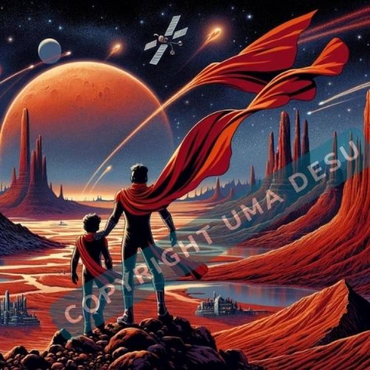 But before returning home, Sky Jumper decided to make one more stop – Mars, where his cousin Comet Twirl lived. They explored the red planet's towering volcanoes and vast canyons, learning about Mars's ancient rivers and lakes. The visit reminded Sky Jumper of the importance of family and the wonders of our solar system.